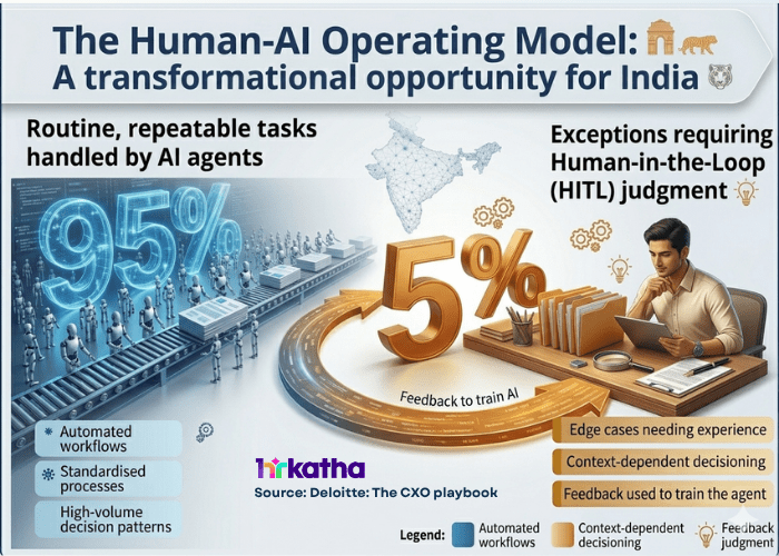 That is the number buried in Deloitte’s latest CXO playbook—and it deserves far more attention than it has received. In the human–AI operating model the report envisions, agentic AI systems will handle 95 per cent of routine, repeatable tasks autonomously. The remaining 5 per cent—exceptions, edge cases and context-dependent judgements—will require human intervention.