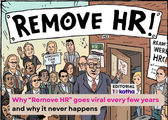 “Remove HR” goes viral because it names the contradiction. It never happens because companies still need the function—just not for the reasons they claim.